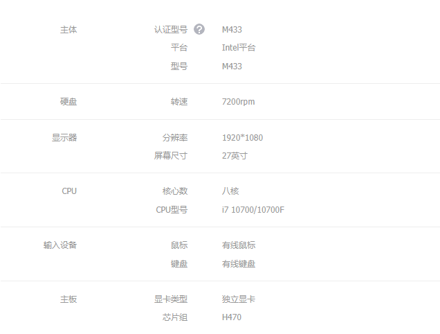 聯(lián)想啟天M433-N000 i7-10700處理器/16G內(nèi)存/1T+256硬盤/RX550顯卡/22顯示器
